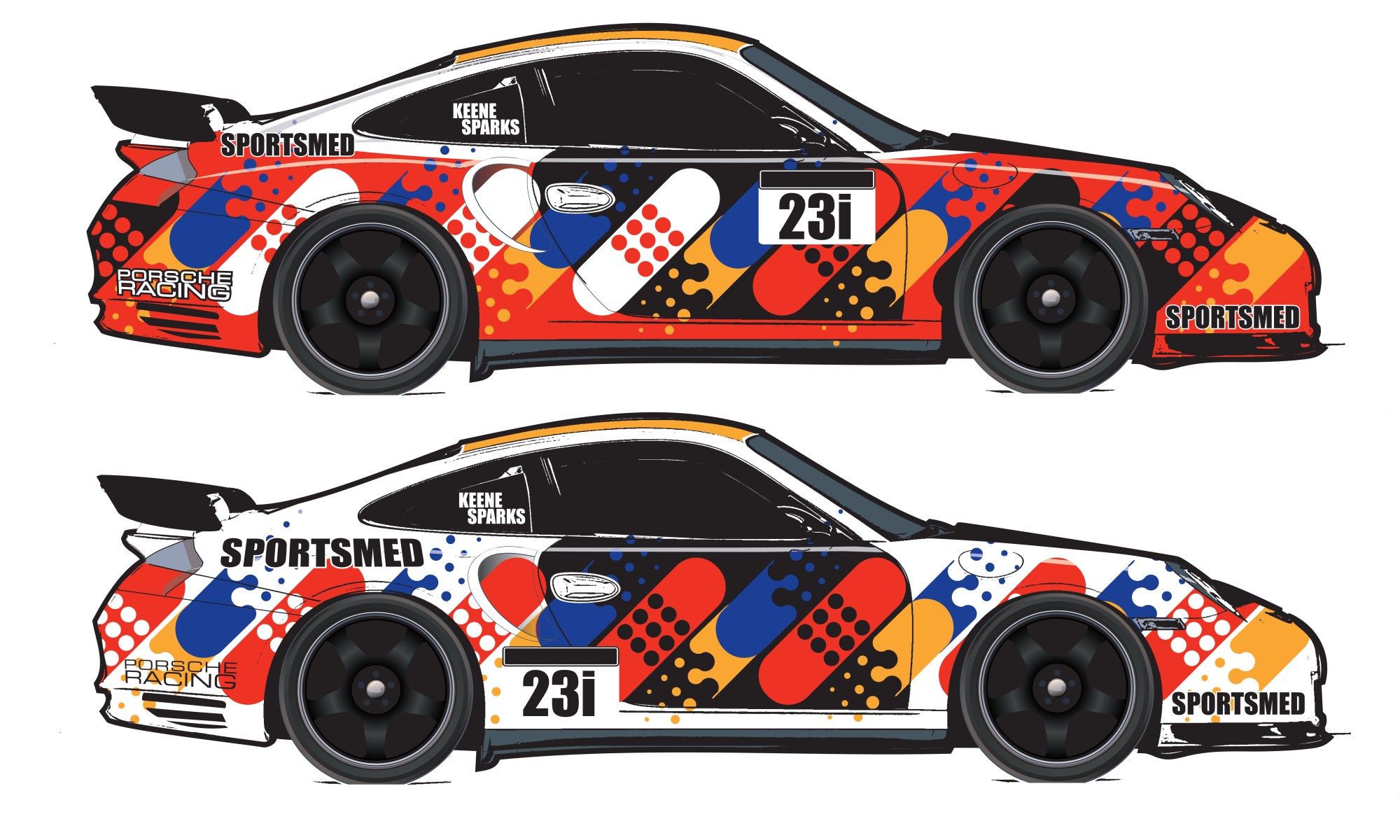 Spoilt for choice, 5 initial designs were prepared and presented to SPORTSMED on the Porsche. Full colour vinyl and digitally printed graphic panels are then stretched to suit the shape of the car, to enhance the tuff stance and present the sponsors message.