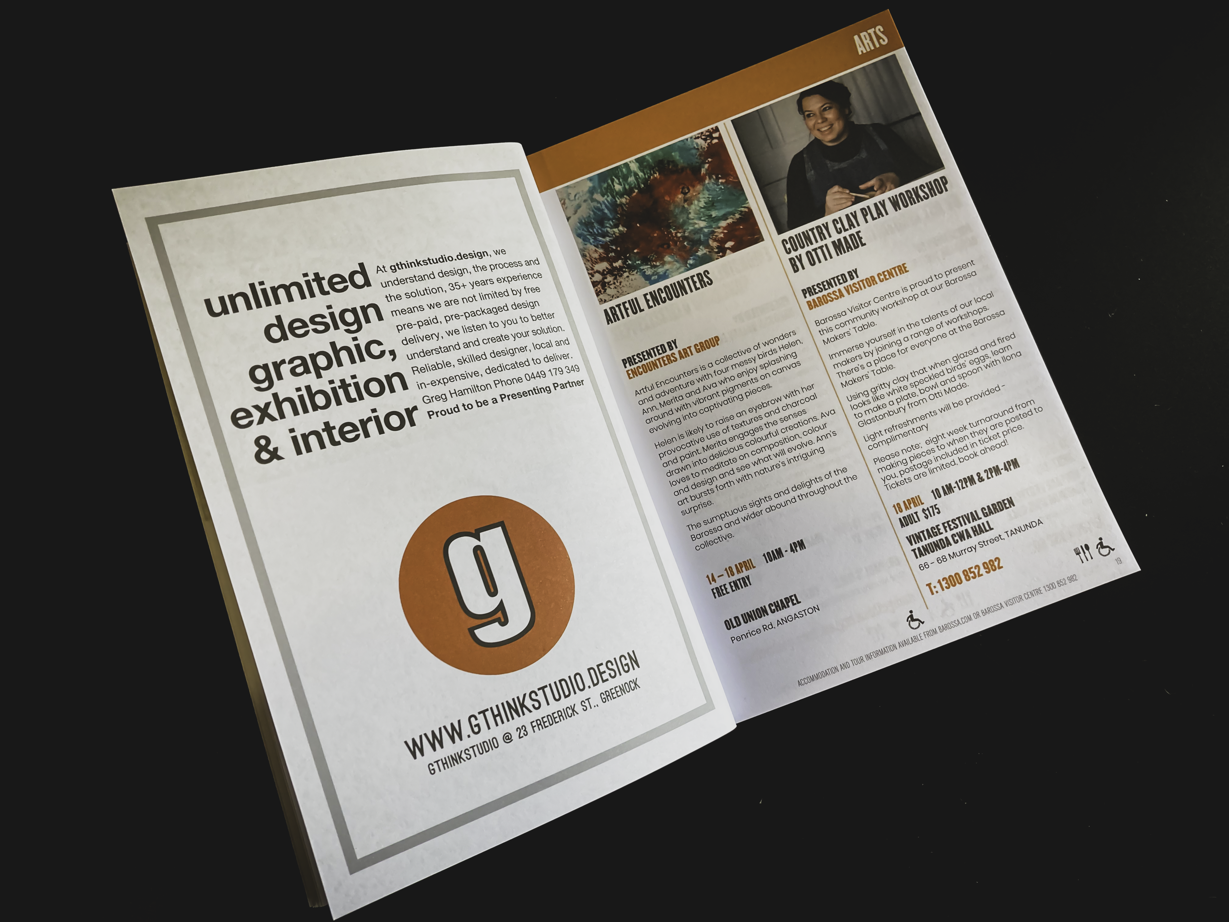 In amongst the huge challenges of COVID’19 Tourism Barossa took to the region to present the next Vintage Festival and deliver they did. We were very pleased to again be asked to design the branding format and assemble the media program along with all art and designs for the associated activities. Do you need branding support for events, marketing and advertising. gthinkstudio.design, delivering unlimited design support.