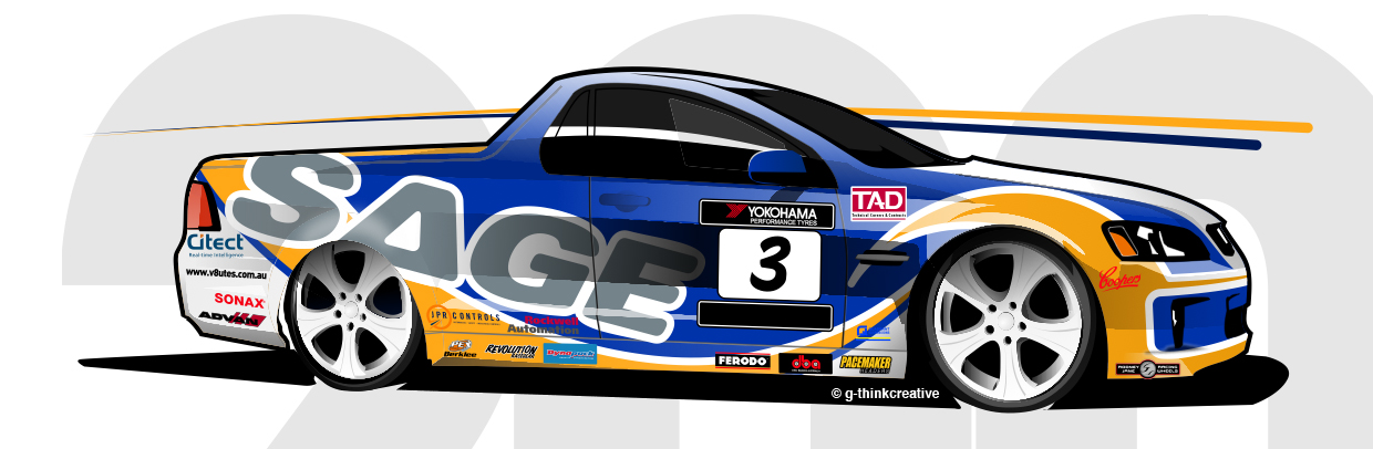 From a single vehicle to an entire fleet, vehicle signs are an extremely cost-effective way to promote your business. Here at gthinkstudio we design and develop concepts for the presentation of your brand, Whilst working with V8 Ute Racing Australia I developed these designs as promotional vehicles to be used at track days.